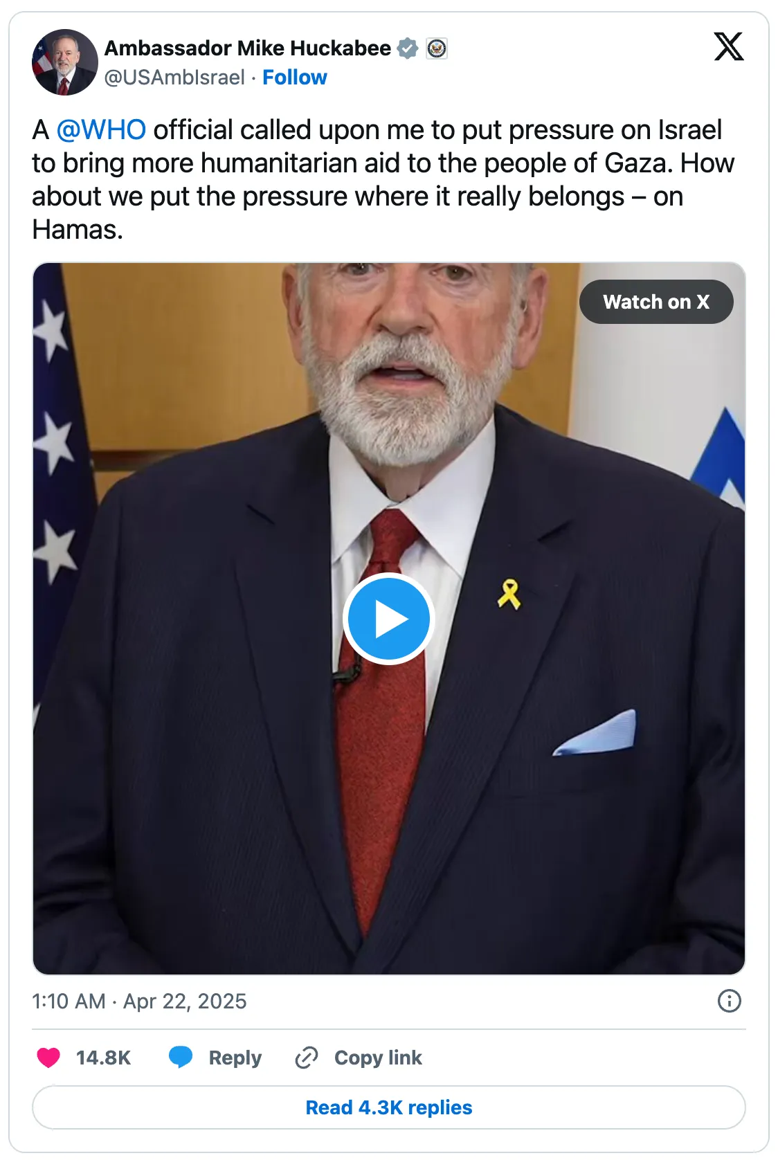 https://x.com/USAmbIsrael/status/1914335973237805553