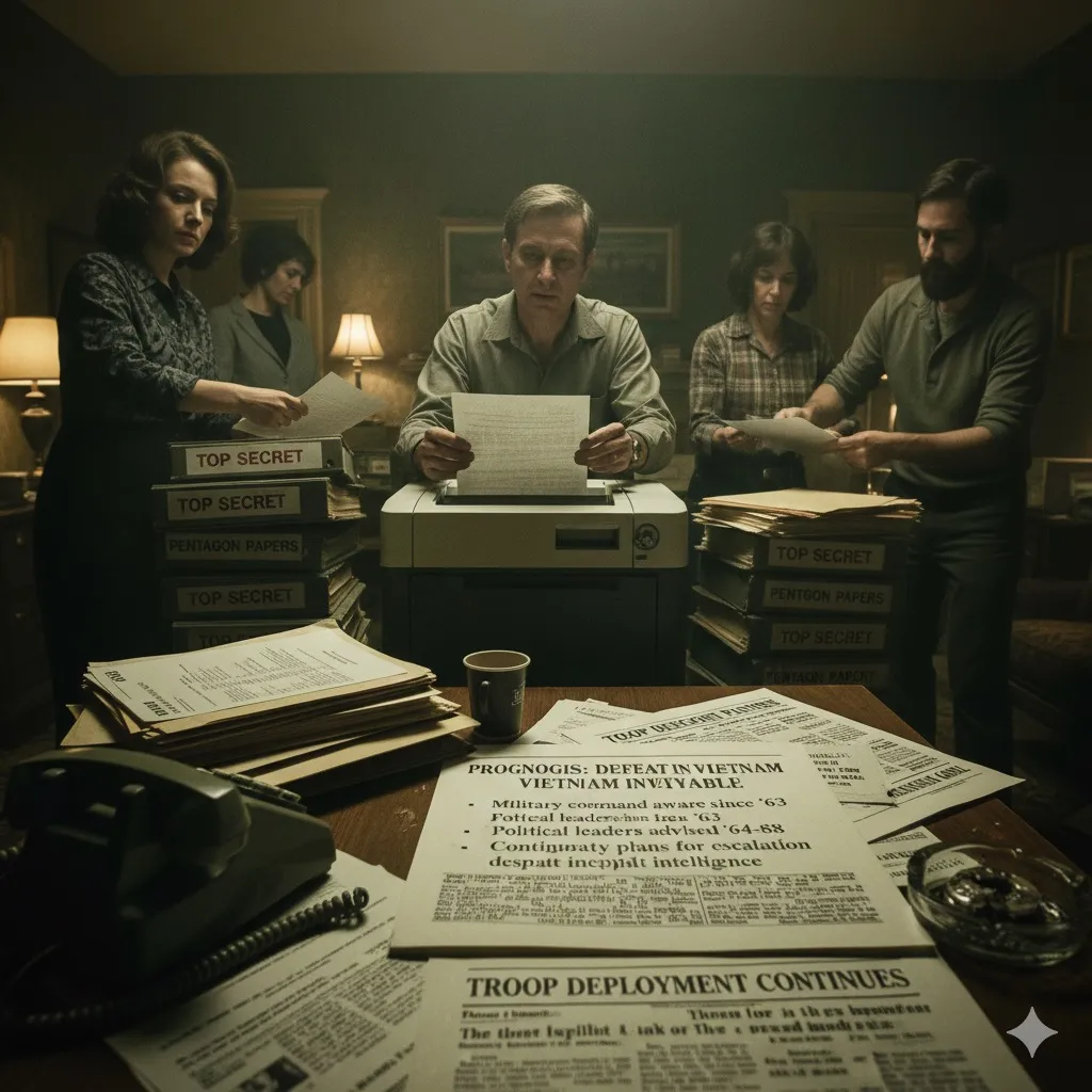 Röviden: a politikai elit 1965-re tudta, hogy a háborút elvesztették, de senki sem akart az az elnök lenni, aki „elveszítette Vietnámot”. Így hát átadták a mérgezett kelyhet Johnsontól Nixonnak, majd Fordnak, további nyolc évet és több tízezer amerikai (és több millió vietnami) életet adva hozzá az elkerülhetetlenhez a belpolitikai túlélés és a vélt nemzeti presztízs érdekében. Ez a Pentagon-iratok alapvető erkölcsi vádirata: az 1965 utáni háborút elsősorban a vereség látszatának kezelése, nem pedig a győzelem érdekében vívták.