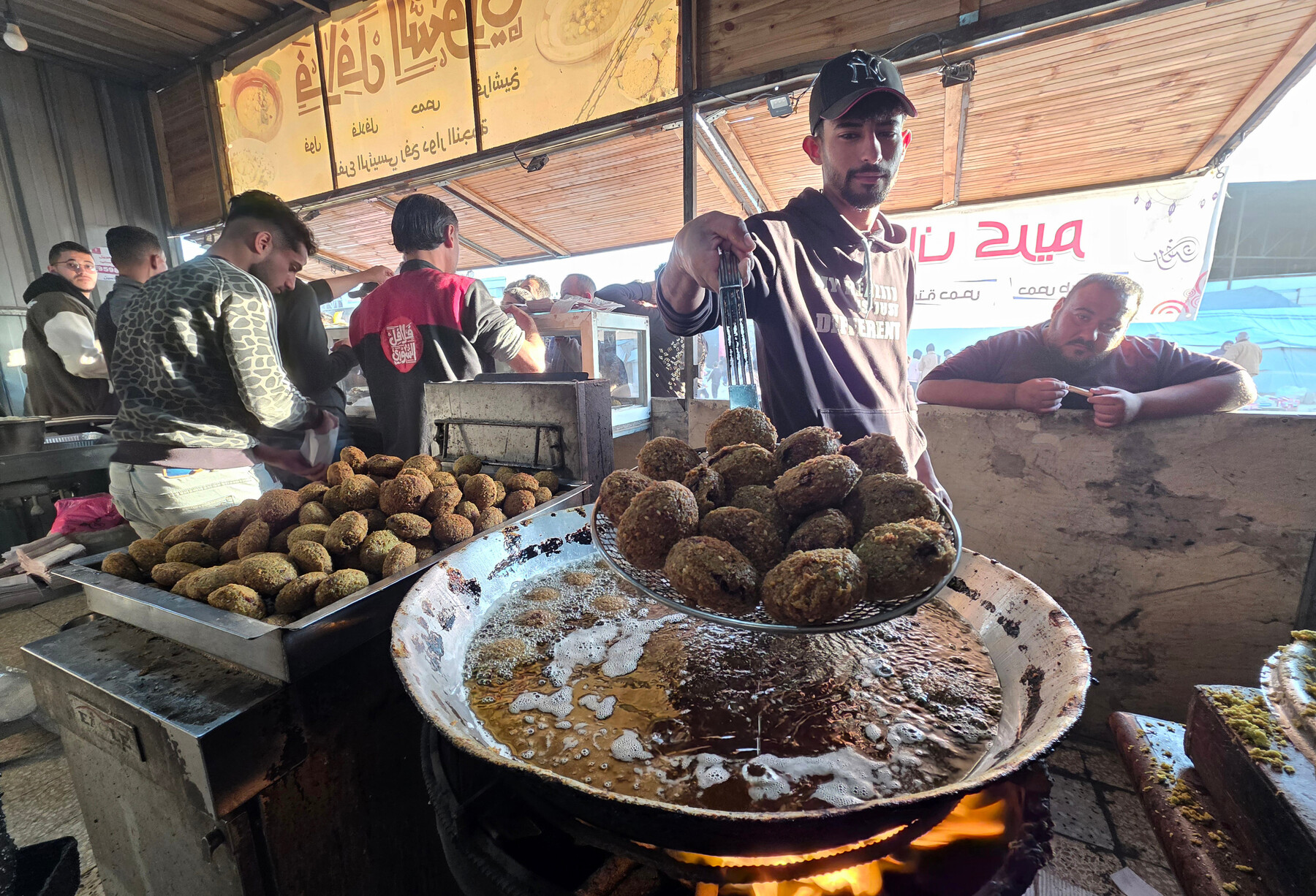 Egy férfi falafelt készít a ramadán idején Khan Younisban, Dél-Gázában, március 3-án. APA képek
