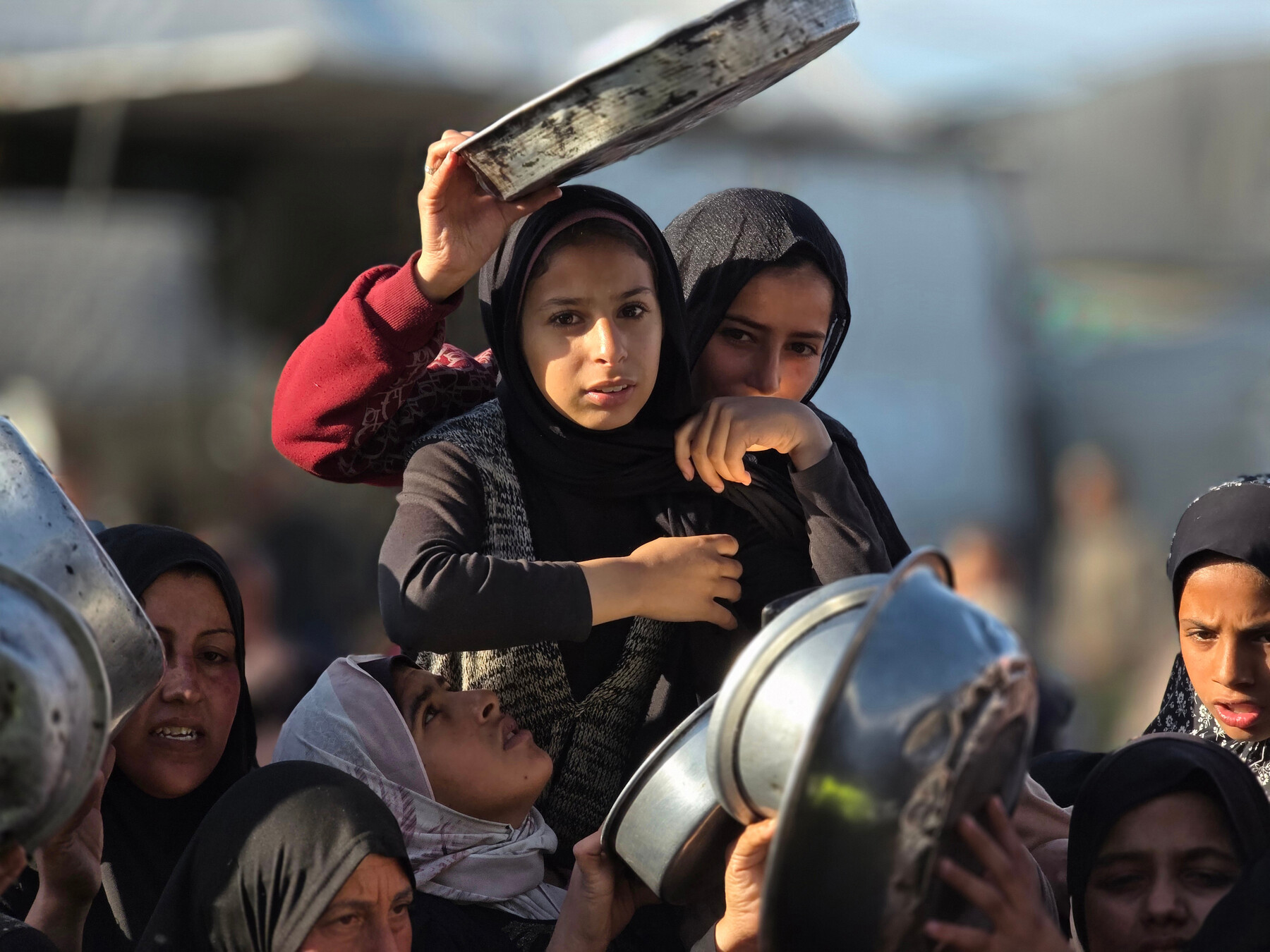 Emberek állnak sorban egy jótékonysági konyhánál Khan Younisban, Dél-Gázában, hogy iftár ételt kapjanak családjaik az emelkedő árak közepette, miközben több ezer menekült család továbbra is sátrakban él, március 6-án. APA képek