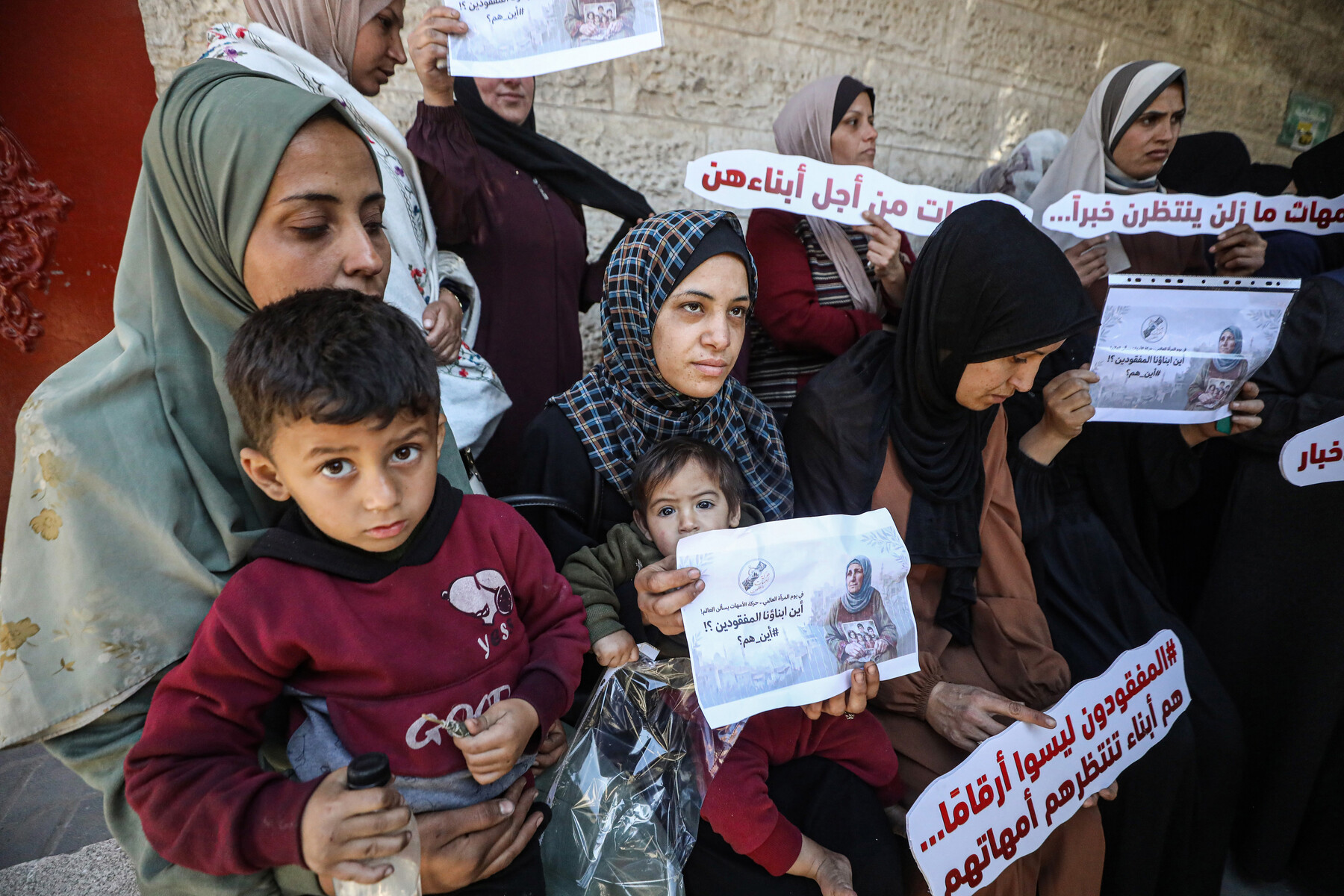 Nők virrasztást tartottak a Nemzetközi Vöröskereszt székháza előtt Gázában, március 8-án, hogy információkat követeljenek eltűnt családtagjaik sorsáról. APA képei