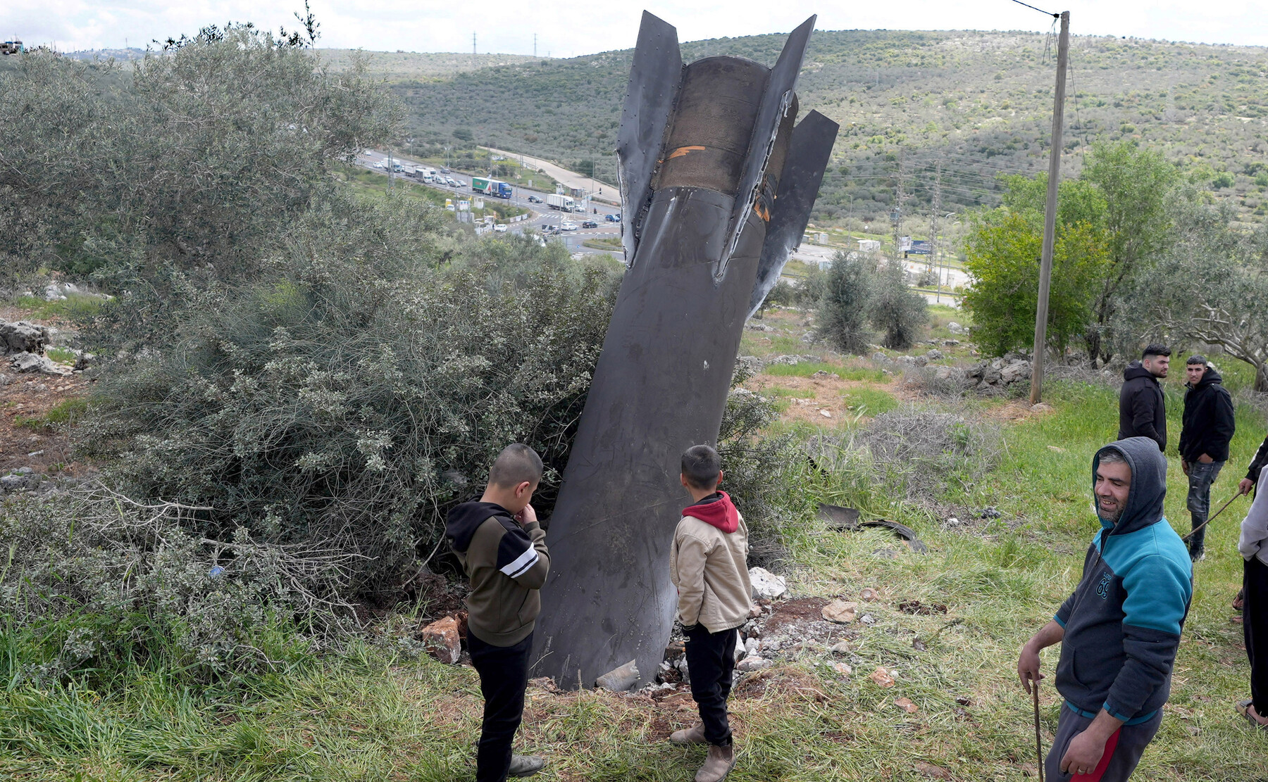 Palesztinok figyelik meg egy iráni rakéta repeszdarabját, amely március 24-én nyílt terepen csapódott be a ciszjordániai Salfit városában. Izrael elfogott egy Irán által indított rakétasorozatot, ami kíváncsi bámészkodók tömegét vonzotta a helyszínre. APA képek