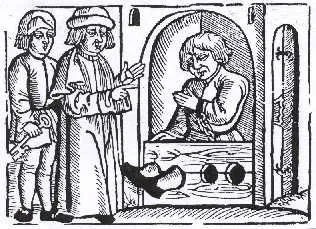 Lengyel paraszt kalodában, 16. századi fametszet