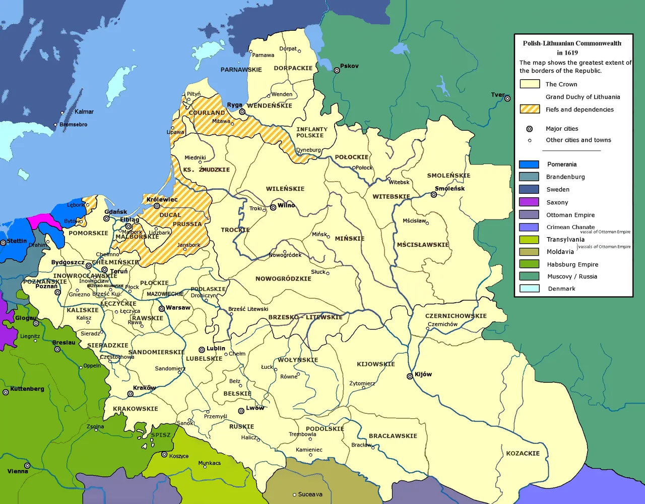 A Lengyel–Litván Közösség legnagyobb kiterjedésében mélyen átnyúlt a mai Ukrajna és Oroszország területére. Legkeletebbre, mindössze háromszáz kilométerre volt Moszkvától.