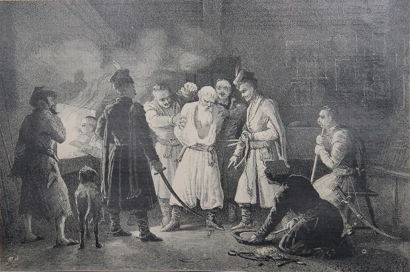 A lengyelországi ortodox keresztényüldözés illusztrációja A. Slastionától Tarasz Sevcsenko híres „Gaidamaki” című versére 1886-ból.