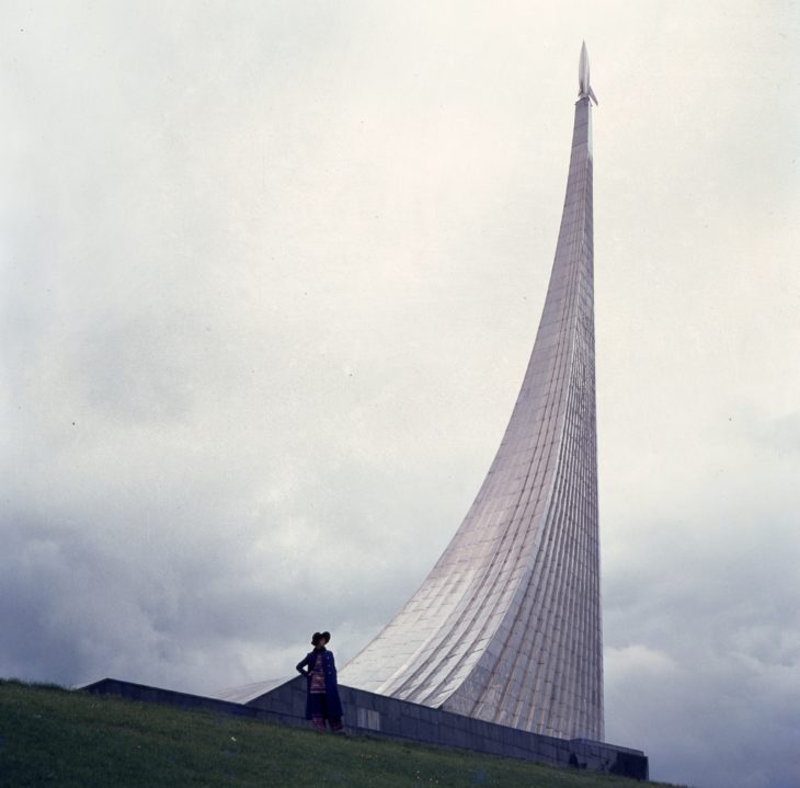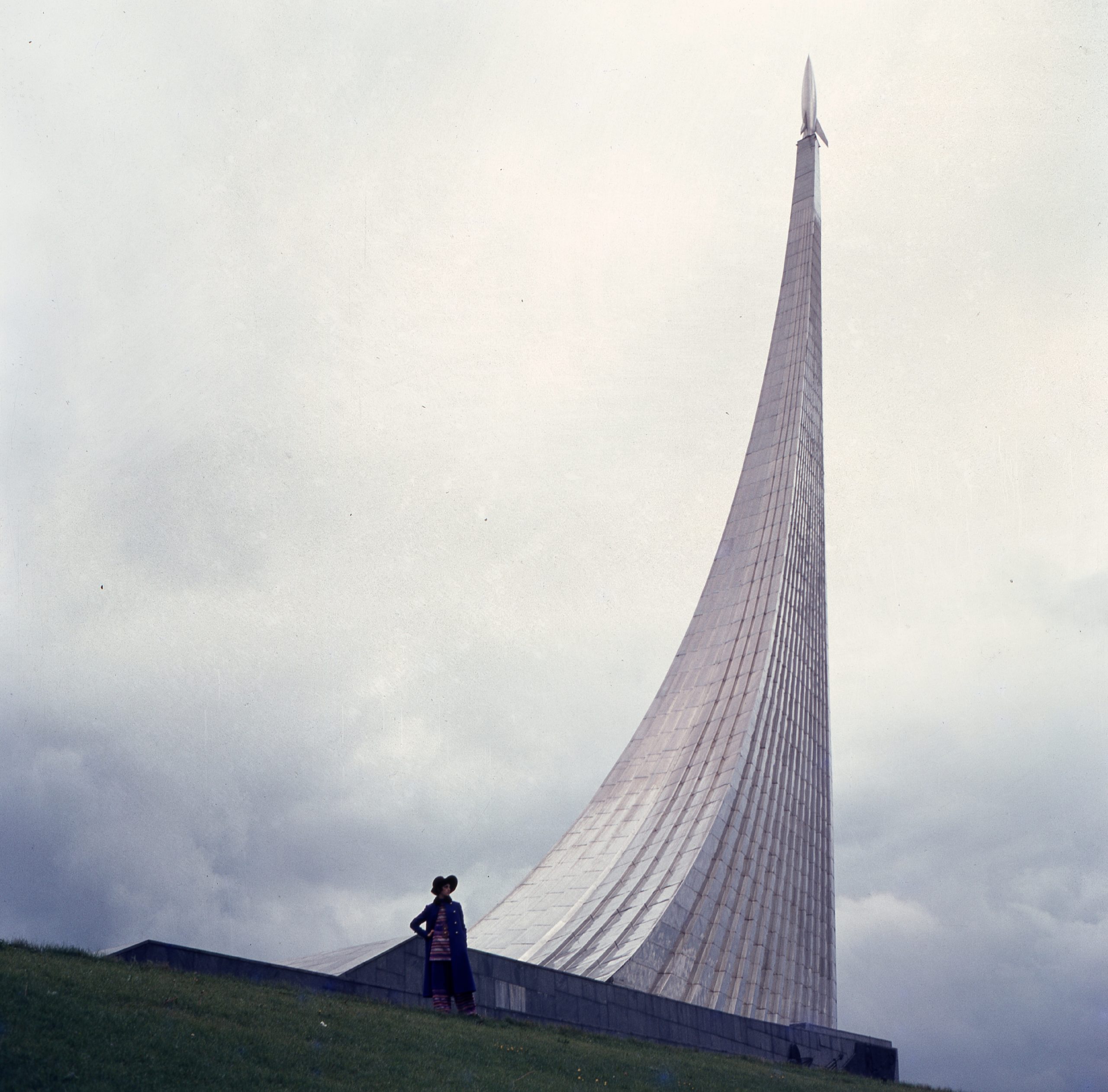 Moszkva, 1973. A Világűr Meghódítóinak Emlékműve a Népgazdaság Eredményeinek Kiállítása (később Összoroszországi Kiállítási Központ) területén. (Forrás: Fortepan / Schiffer Pál)