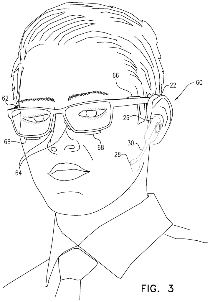Az egyik beadvány egy „a felhasználó füléhez illeszkedő érzékelőeszközről szól, amelynek optikai érzékelőfeje érzékeli az arcról visszaverődő fényt, és erre válaszul jelet ad ki. A feldolgozó áramkör feldolgozza a jelet, hogy beszédkimenetet generáljon.”