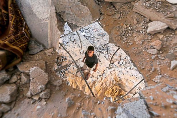 Egy kisfiú szeptember elején, miután izraeli légicsapás érte a nuseirati menekülttábor egyik iskolaépületét. Sok gyermeket is érint a háború. Kèp: IMAGO/Omar Ashtawy \ apaimages