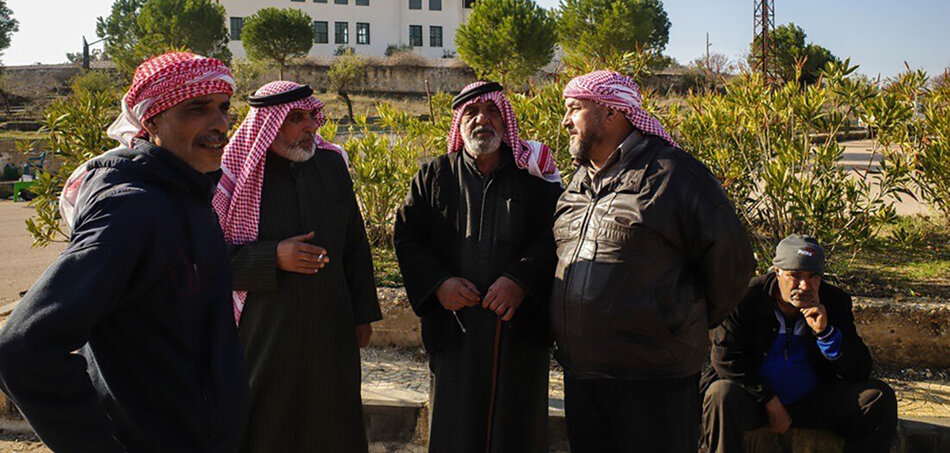 „Mi 430 ember vagyunk, akik csapdába estek Al-Hamidijá-ban” - panaszkodnak a falu vénei. Piros és fehér kufijákba burkolóznak, és cigarettájuk szívásai között beszélgetnek, miközben egy tucat fiatal figyelmesen hallgatja őket. Az ostrom december eleji kezdete óta hetek óta élelem és víz nélkül kell boldogulniuk, és nem férnek hozzá olyan fontos szolgáltatásokhoz, mint az egészségügyi ellátás és az oktatás. „Még a humanitárius szervezeteket sem engedik be” - panaszolja egy idősebb férfi. „A teheneink és a birkáink haldokolnak, mert nincs mivel etetnünk őket. Ha egy gyerek éjszaka megbetegszik, nem tudjuk kórházba vinni. Éhezünk, és nem maradt semmink”.