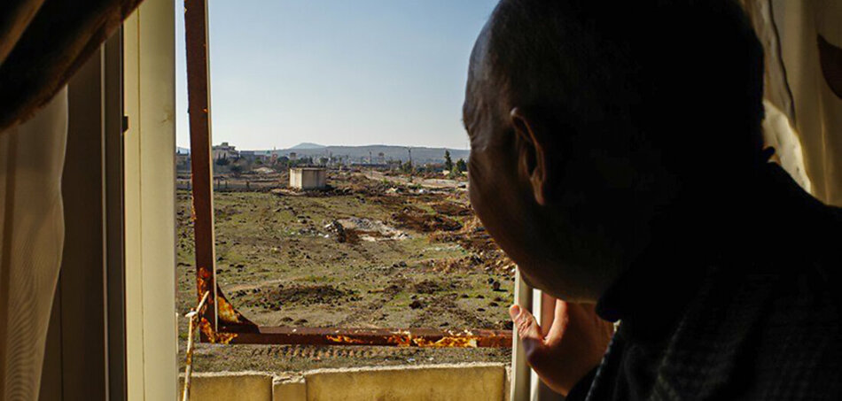 A Golán Kulturális és Művészeti Ház az utolsó épület, amely még áll az izraeli katonai ellenőrzőpont előtt Madinat Al-Salam-ban. Néhány száz méterrel arrébb, egy felvert földdel és keréknyomokkal borított nyílt területen jól látható a tank. A központ elegánsan öltözött vezetője, Ahmad Al-Marduki kinéz az irodája ablakán, és csillogó szemmel kommentálja a jelenetet. „Nézd, mit műveltek! Miért pusztítják a földet? Miért pusztítják el a fákat? Ezeket a fákat évtizedek óta ültetik, idősebbek, mint Izrael állam. Ezért tépik ki őket?” - kérdezi.