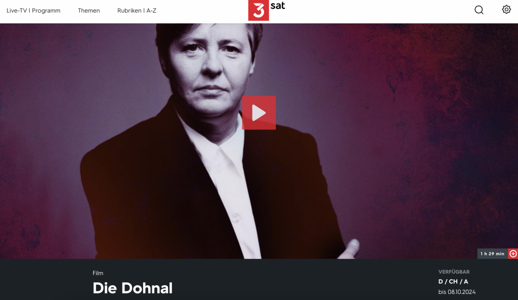 A Johanna Dohnal (SPÖ) életéről és munkásságáról szóló dokumentumfilm a 3sat médiatékában megtekinthető: