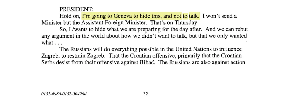 A The Grayzone által áttekintett dokumentumokból kiderül, hogy Tudjman-nak soha nem állt szándékában békét kötni a konferencián.