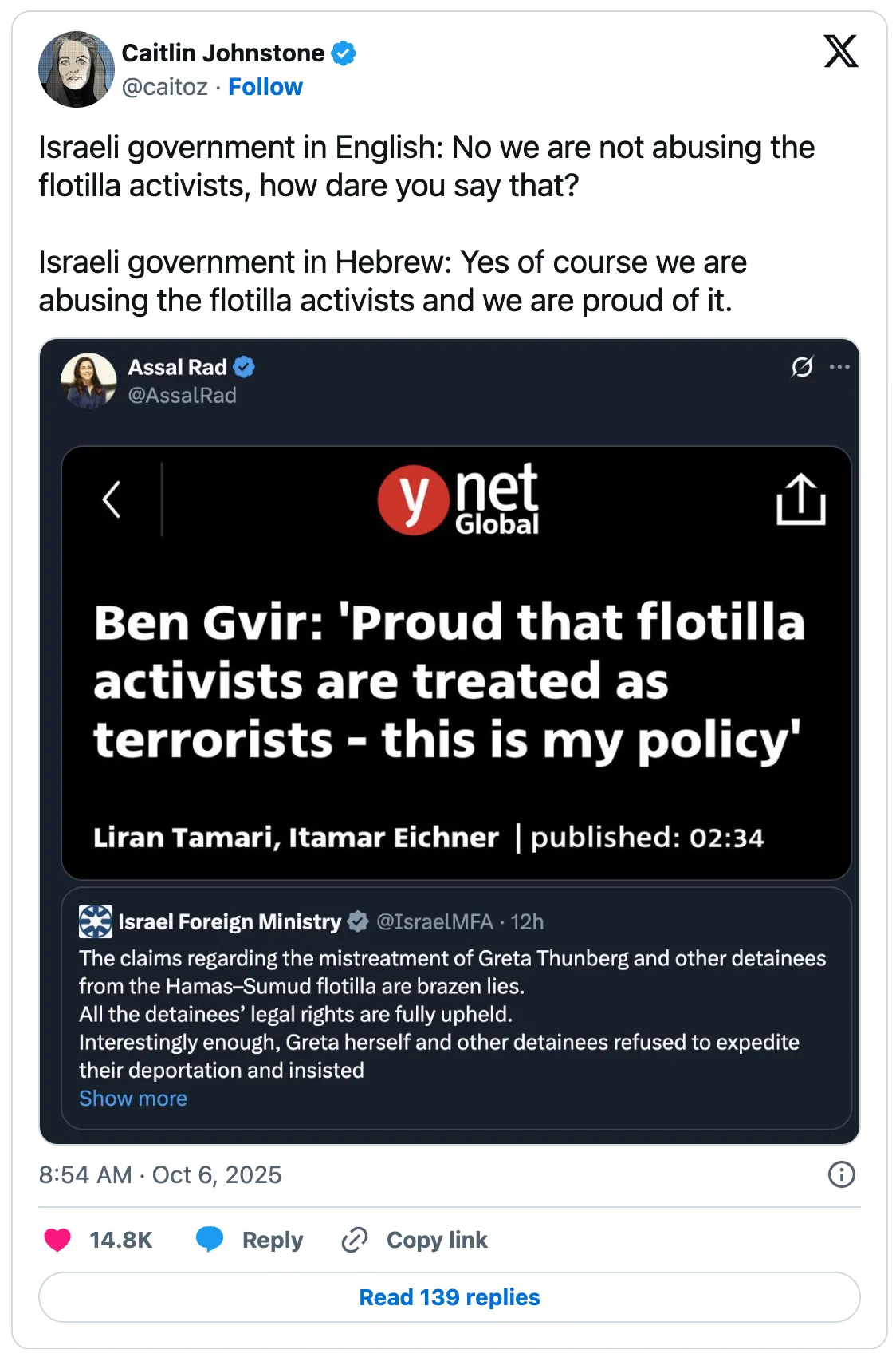 Forrás: //substack.com/@caitlinjohnstone/note/c-164095303">https://substack.com/@caitlinjohnstone/note/c-164095303 2025. október 8.