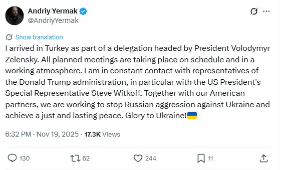 Ez azonban még mindig valószínűtlennek tűnik. Alig néhány órával ezelőtt Jermak bejelentette részvételét azokon a tárgyalásokon, amelyeket Ukrajna állítása szerint folytat Oroszország képviselőivel Törökországban: