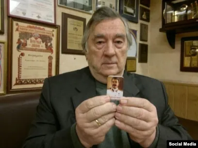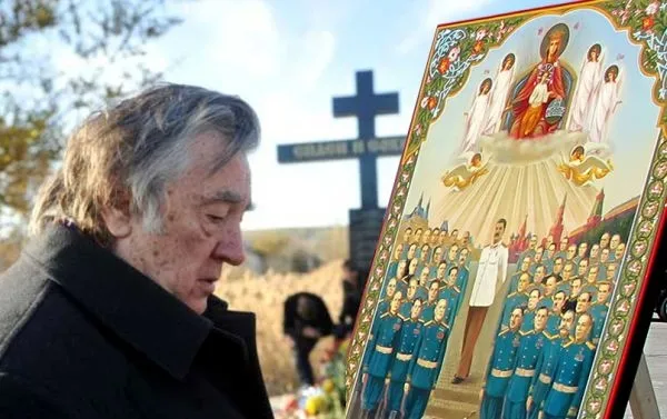 A. Prohanov imádkozik a (nem kanonikus) „Sztálin-ikon” előtt