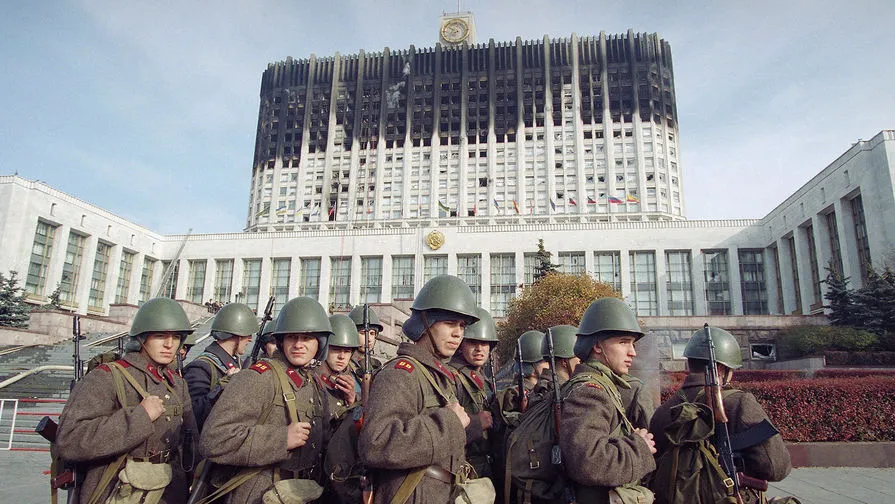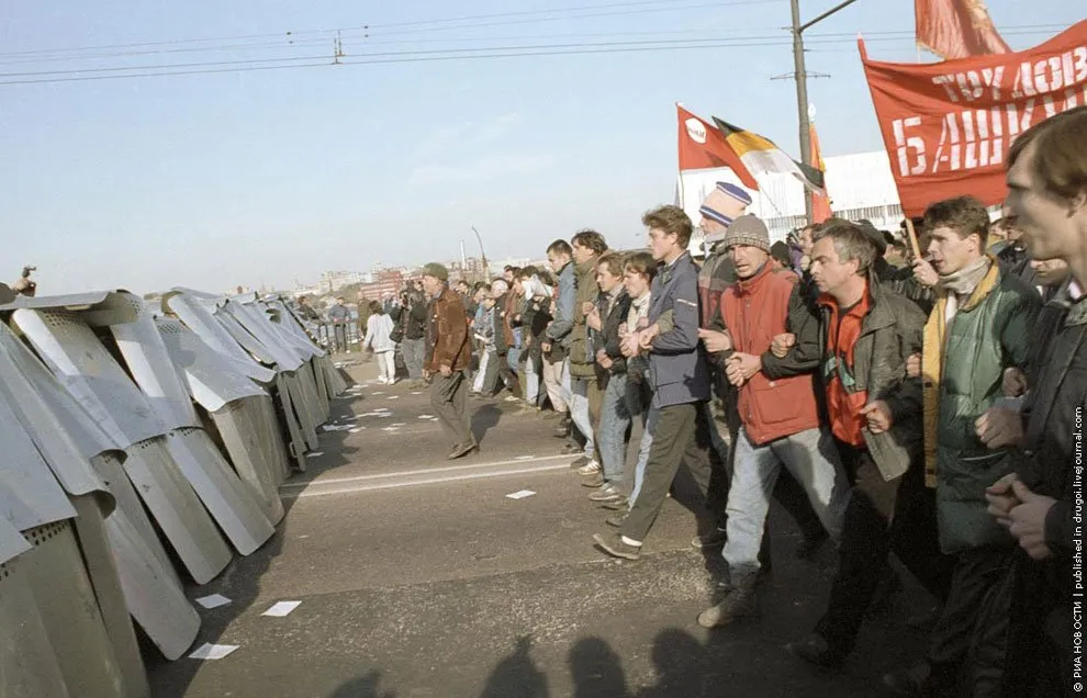 A kommunisták, nacionalisták és vallási misztikusok tarka legénysége 1993-ban szembeszáll Jelcin rohamrendőrségével. Jelcin demokráciapárti puccsában több száz tüntető hal meg.