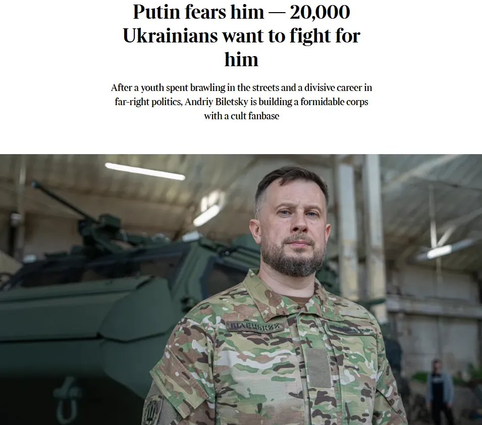 Egy különösen extravagáns elmélet szerint Ukrajna ultranacionalista Azov mozgalma valójában a Kreml mélyen gyökerező művelete , amelynek célja az ukrán nacionalizmus hiteltelenítése a nácizmussal való társítással. Igen, az Azov, állítólag Oroszország legnagyobb ellensége, élén a „Fehér Führer” Andrij Biletskivel.