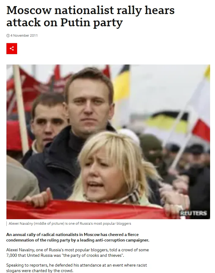 Természetesen ez aligha volt pusztán taktikai szövetség, tekintve, hogy Navalnij saját hirdetései a nem fehér migránsokat likvidálandó csótányokként, vagy kitoloncolandó fogfájósokként ábrázolták.