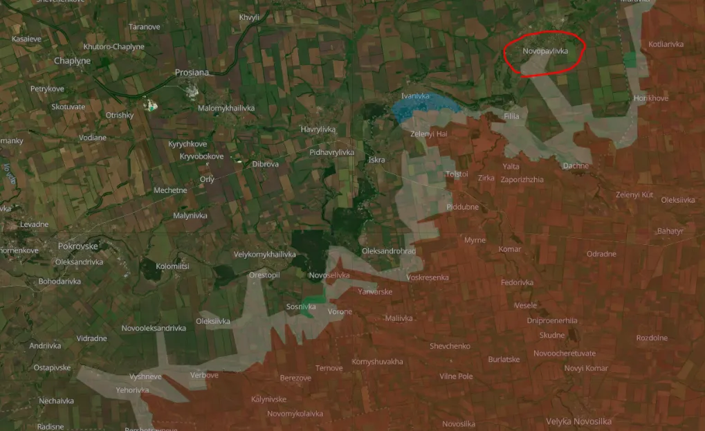 Bár Filimonov (egy kellemetlen figura, de lépjünk tovább) azt állítja, hogy legyőzte a Novopavlivka környéki „buzeránsokat”, az ukrán térképek nem ilyen optimisták. A DeepState csupán a „szürke zónát” mutatja, ami oda vezetett, hogy a falu az elmúlt hetekben folyamatosan kiszélesedett.