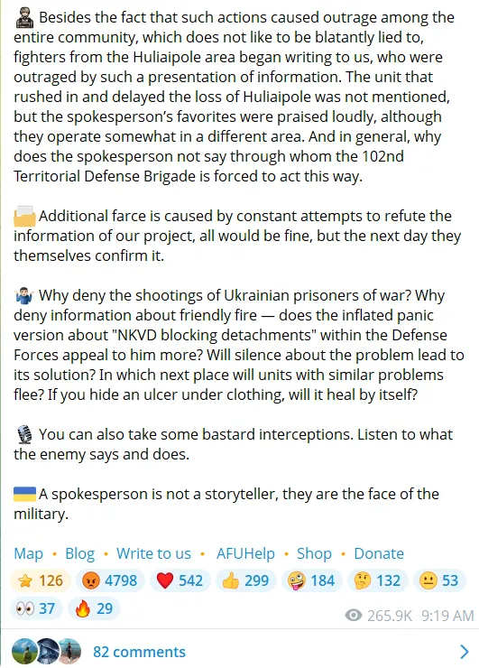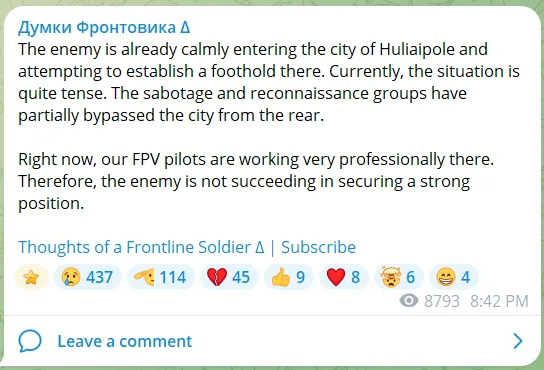 Az orosz hadsereg Huliaipole irányú aktív előrenyomulásáról szóló információk egy nagyon fájdalmas résen, az úgynevezett „tévesztésen” keresztül szivárogtak ki.
