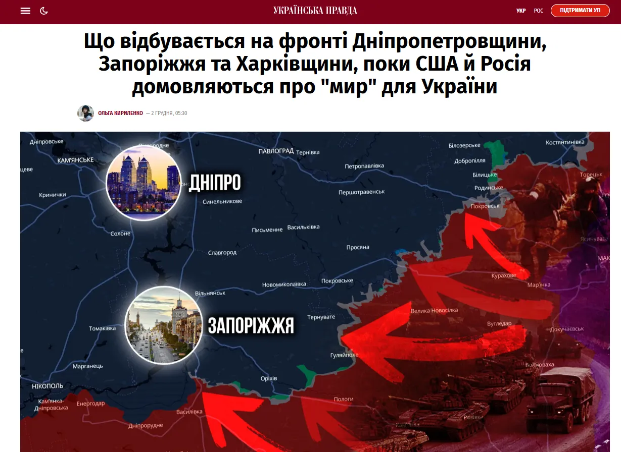 December 2-án az Ukrajinszka Pravda cikket tett közzé , amelyben azt elemzi, hogy pontosan miért haladtak előre olyan gyorsan az orosz csapatok Zaporizzsja és Dnyipropetrovszk déli területein.
