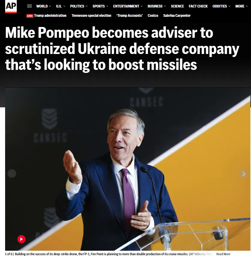 Novemberben pedig kiderült , hogy Pompeo a Fire Point, Ukrajna vezető védelmi vállalatának igazgatótanácsában van.