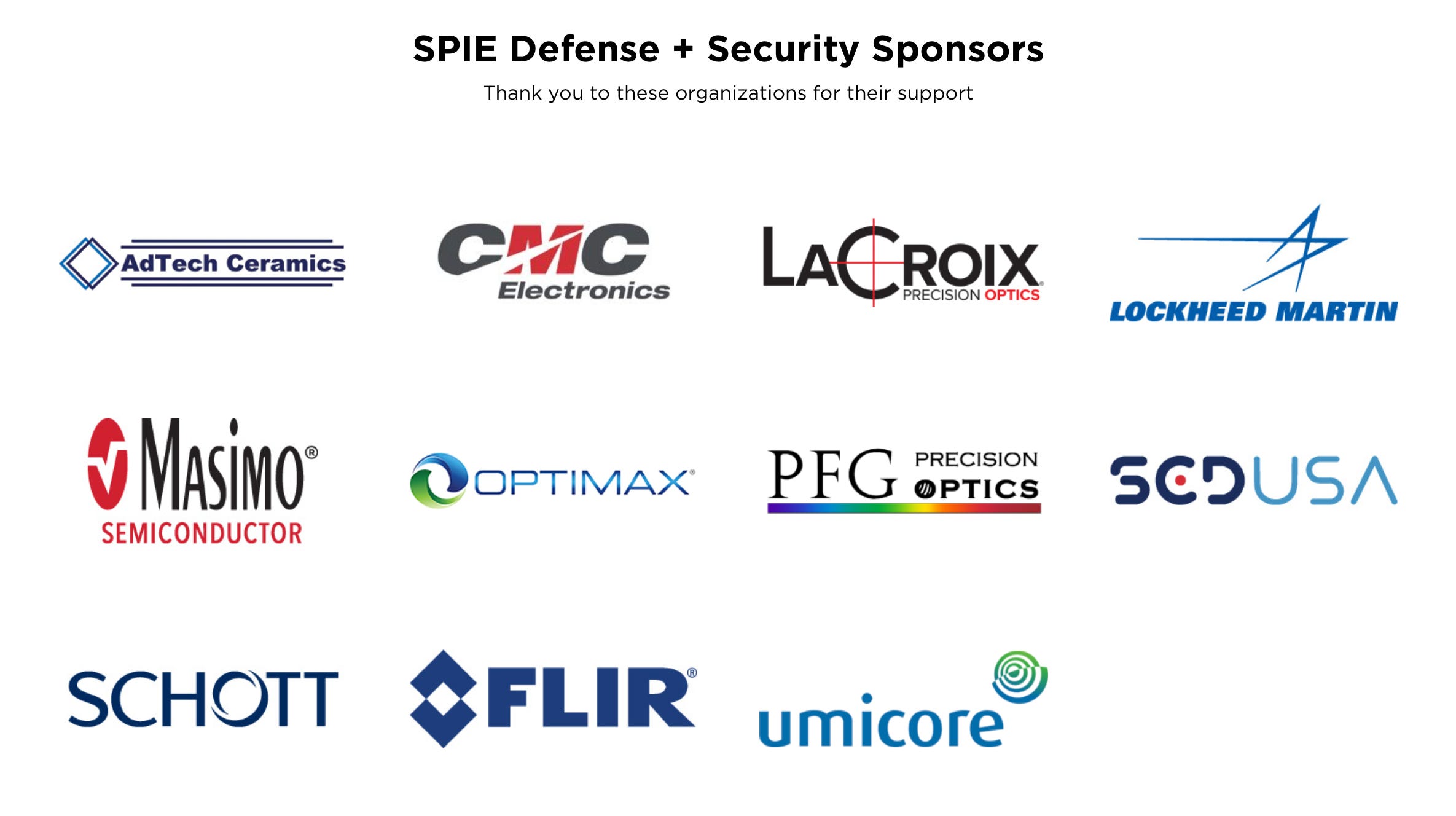 Az SPIE Defense + Security Exhibition weboldalának képernyőképe, amelyen feltüntetik a szponzoraikat.