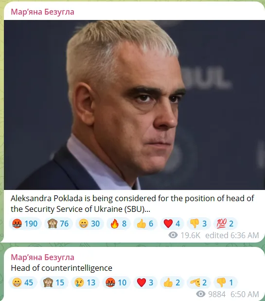 A dühös reakciók mennyisége valószínűleg annak tudható be, hogy az elmúlt két évben Pokladot Jermak Maljuk utódjának választottaként kezelték. Poklad korábban egyformán ellenezte mind névleges főnökét, Maljukot, mind a GUR rivális vezetőjét, Budanovot, bár az elmúlt hetekben az ukrán média azt állítja, hogy Budanov és Poklad megegyeztek.