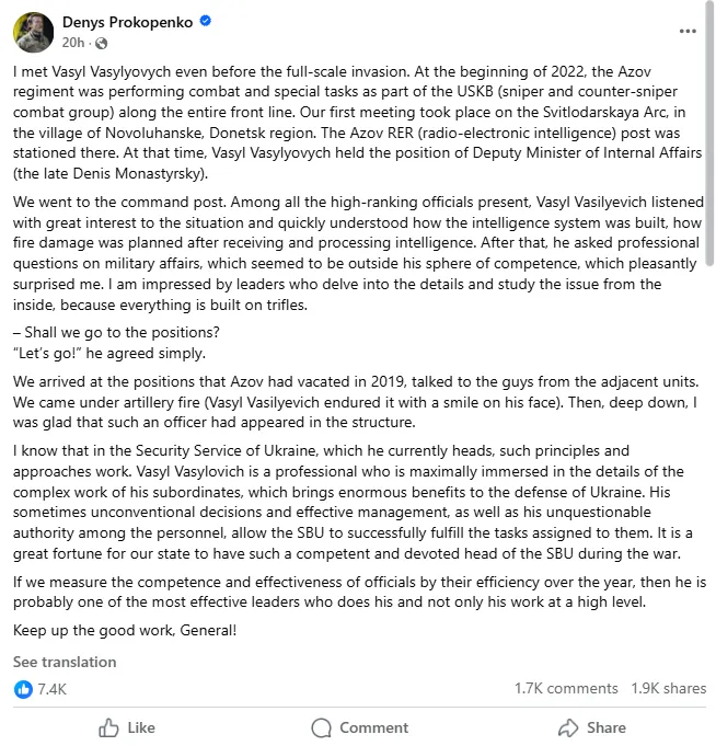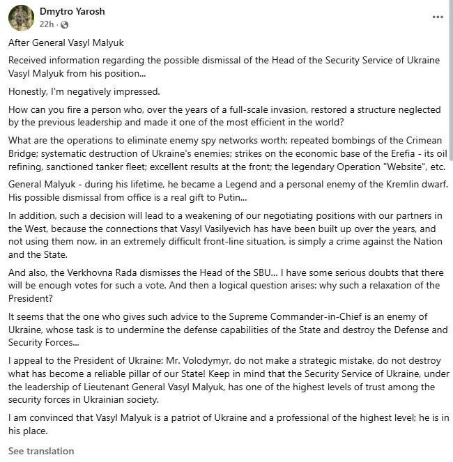Az SZBU által pártfogolt fasiszta bloggerek és félkatonai vezetők, mint például Szerhij Szternenko (ennek az elítéletlen gyilkosnak a hosszú SZBU-kapcsolatairól itt írtam ), szintén szenvedélyes szövegeket írtak Maljuk támogatására. Dmitro Jaros, a nacionalista „Jobboldali Szektor” mozgalom vezetője, írt egy bejegyzést Maljuk védelmében. Nem meglepő, tekintve, hogy Jaros a 2000-es és 2010-es években ismert SZBU-ügynök volt.