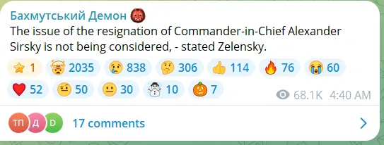 A népszerű katonai bloggerek mind nagyon csalódottak. Ő itt Bakhmut Demon, 180 000 követővel: