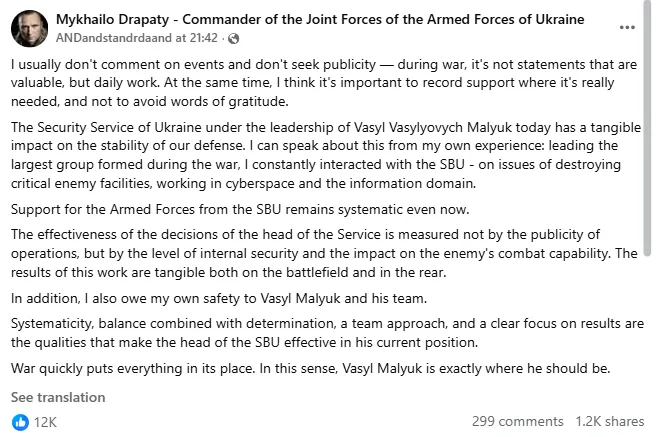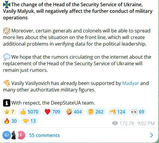 A DeepState katonai elemzői ma egy Maljuk-párti bejegyzést is közzétettek 800 000 követőjüknek: