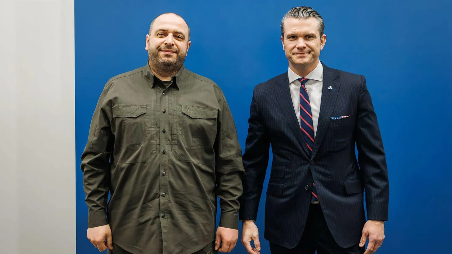 Hegseth Rustem Umerov akkori ukrán védelmi miniszterrel, 2025. február