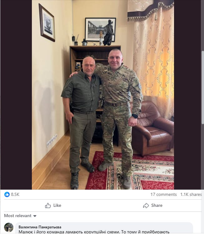 A hadsereg és az elnök közötti megosztottság mellett van egy másik is. Az elnökkel szembeni nyugatbarát/nyugat által finanszírozott liberális nacionalista ellenzék („sorosisták”) rendkívül aggódnak Zelenszkij legutóbbi személyi döntései miatt. Maljukot taktikai szövetségesnek tekintik Zelenszkij-Budanov megerősödése ellen.