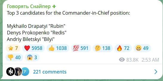 Sztanyiszlav Bunyatov, Ukrajna egyik legnépszerűbb katonai parancsnoka, akinek van távirati fiókja is, ma ismertette Szirszkij utódjaira vonatkozó javaslatait: