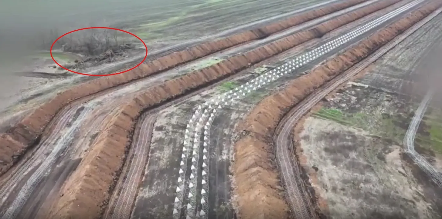 A következő fotók a páncéltörő és gyalogosvédelmi akadályok kombinációját mutatják az új lövészárkokban. Molin szerint Ukrajna 2025 előtti erődítményeiből hiányzott ez a kombináció.