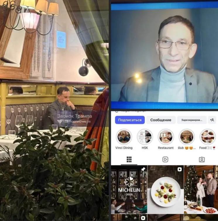 Egy friss fotó Portnikovról egy lengyelországi Michelin-étteremben, amint két interjú között ünnepélyesen kijelenti, hogy az ukrajnai háború még 10 évig folytatódik.