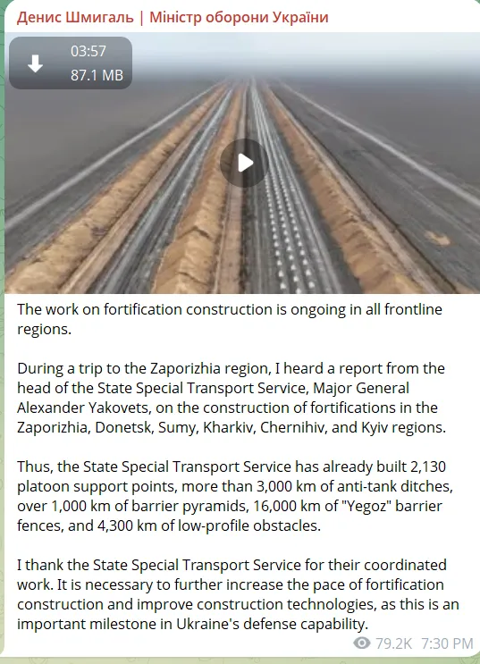Talán valami tényleg megváltozott az elmúlt 6 hónapban. A kormány szerint Ukrajna 2025 folyamán új erődítményrendszereket épített, amelyek állítólag a személyzethiány enyhítésére szolgálnak. 2025. december 20-án Ukrajna akkori védelmi minisztere, Denis Shmyhal posztolt a hatalmas új erődítmények építéséről.