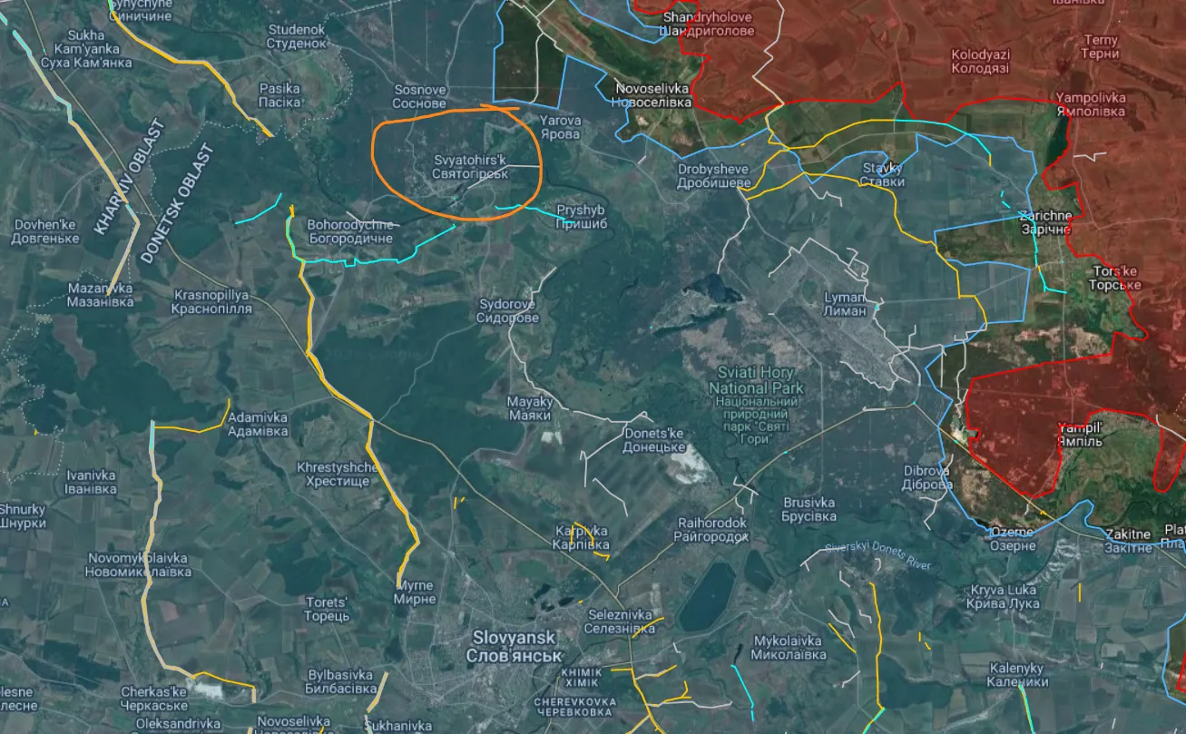 A donyecki terület legészakibb részén az orosz csapatoknak sikerült meglehetősen nagyot előrenyomulniuk Szvjatogorszk városába. Valószínű, hogy ez csupán egy kis beszivárgó csoport, amely nem sokáig marad életben. Az ukrán katonai táviratok mindazonáltal aggódnak emiatt. A Muchnoy Jugend ezt írta január 9-én:
