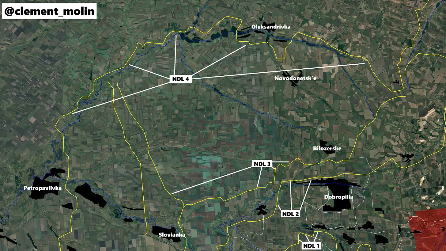 Oroszország 2025 augusztusában Bilozerske és Dobropillia környékén érte el nagy áttörését. Decemberi írásában Molin azt állítja , hogy az oroszoknak abban a hónapban sikerült átlépniük az „Új Donbász-vonalat”, bár azt a kis orosz csapatokból álló csoportot végül visszaverték. Molin azóta azt írja, hogy Ukrajna megduplázta az erődítmények építését, különösen az erdőirtások blokkolására összpontosítva, amelyek lehetővé tették az orosz előrenyomulást ezen a területen.
