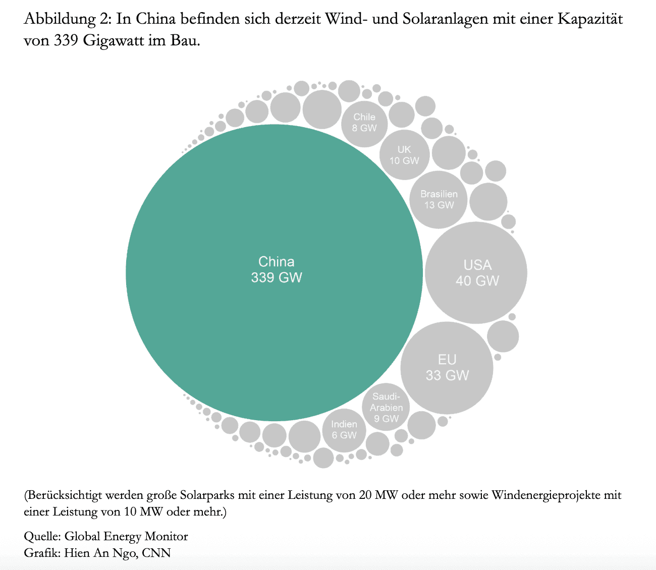 Jelenleg a Kínában épülő szél-és napfényberendezések 339 gigawatt kapacitással rendelkeznek.
