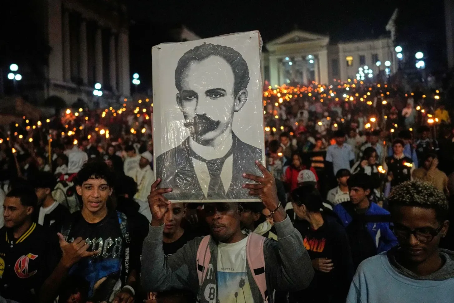 Kubaiak fáklyás felvonuláson vesznek részt, amelyet José Martí születésének 173. évfordulója alkalmából tartottak január 26-án. Fotó: Agence France-Presse
