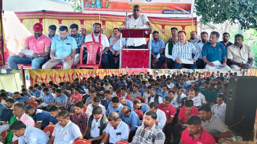 A Ramanagar kerületi szakszervezetek és kisani szervezetek közös kongresszusa a Bidiadi ipari területen tartotta ülését. Fotó: CITU