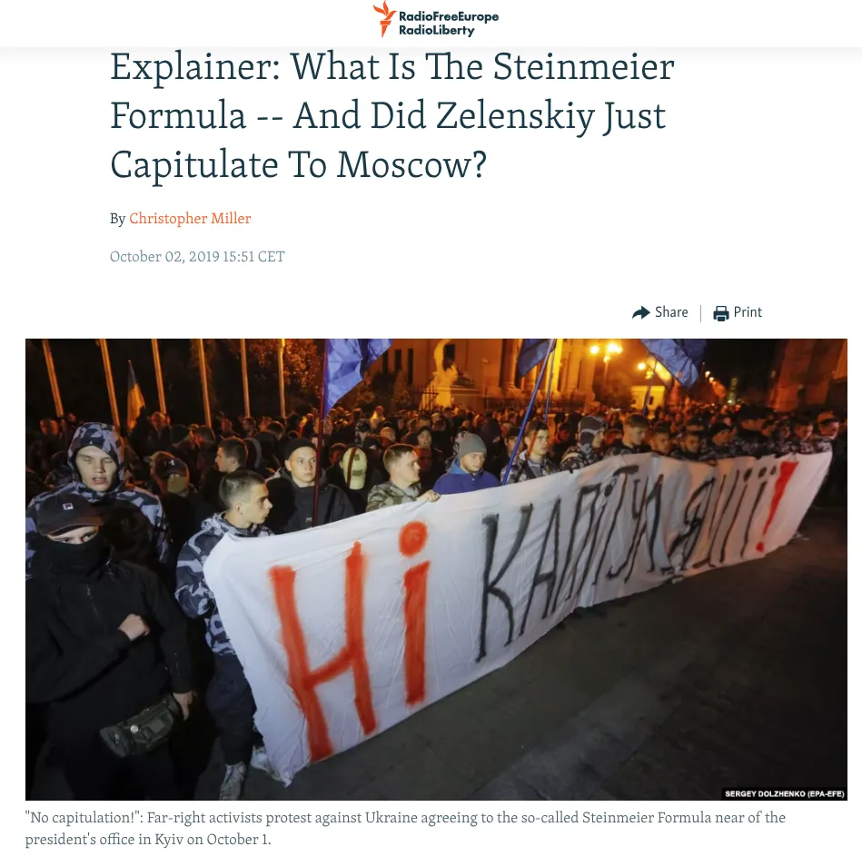 egyértelművé vált, hogy ez nem fog megtörténni. Zelenszkijt 2019-ben azzal az ígérettel választották meg, hogy kompromisszumokkal véget vet a háborúnak Oroszországgal, és egy év hivatalban töltött idő megmutatta, hogy nincs értelme erre várni. Valahányszor bármilyen óvatos lépést tett a minszki megállapodásokkal kapcsolatban, mint például a 2020-as Steinmeier-dokumentum esetében, a nacionalista erők tiltakoztak az utcákon. Zelenszkij elkerülhetetlenül meghátrált.