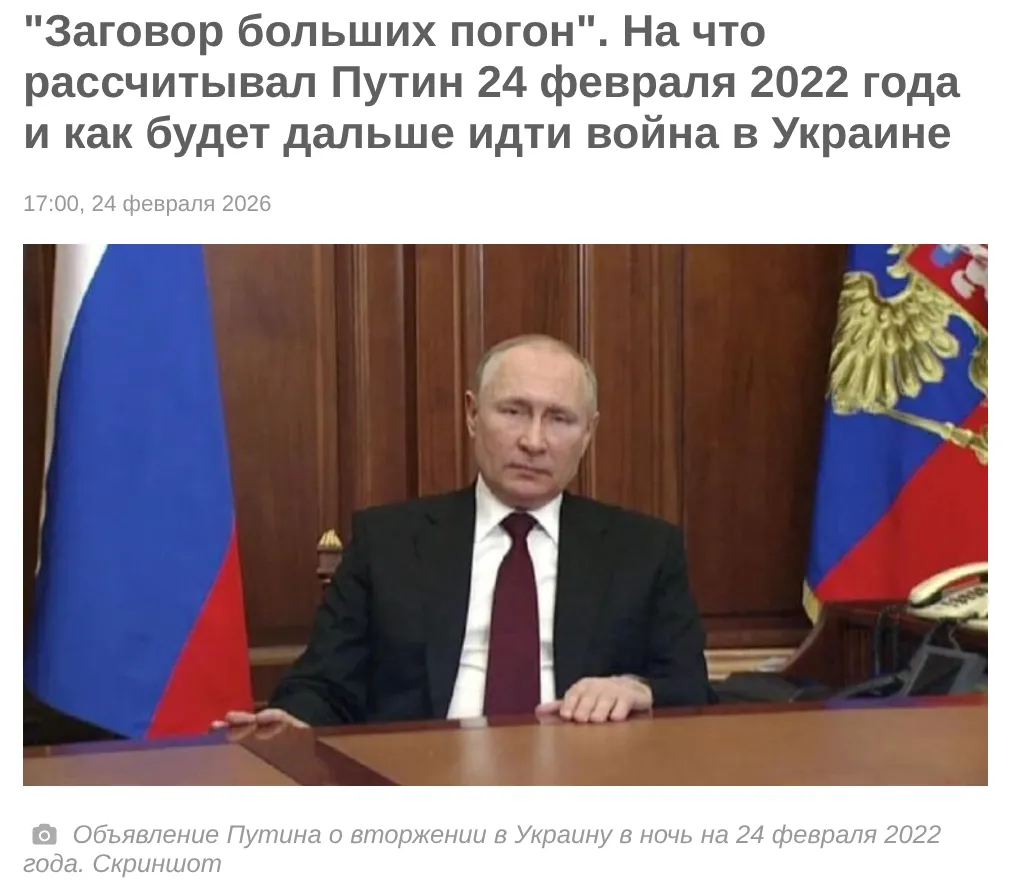 A semleges ukrán strana.ua újság 2026. február 24-én érdekes cikket közölt erről a témáról. A címe: „Magas rangú tisztek összeesküvése. Mire számított Putyin 2022. február 24-én, és hogyan fog folytatódni a háború Ukrajnában”