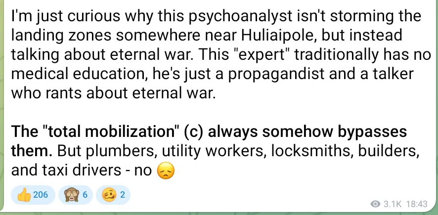 Egy március 1-jei publikációban az Ukrajinszka Pravda által megkérdezett pszichoanalitikus arról tájékoztatja az olvasókat, hogy el kell fogadni a háború hosszú távú folytatását.
