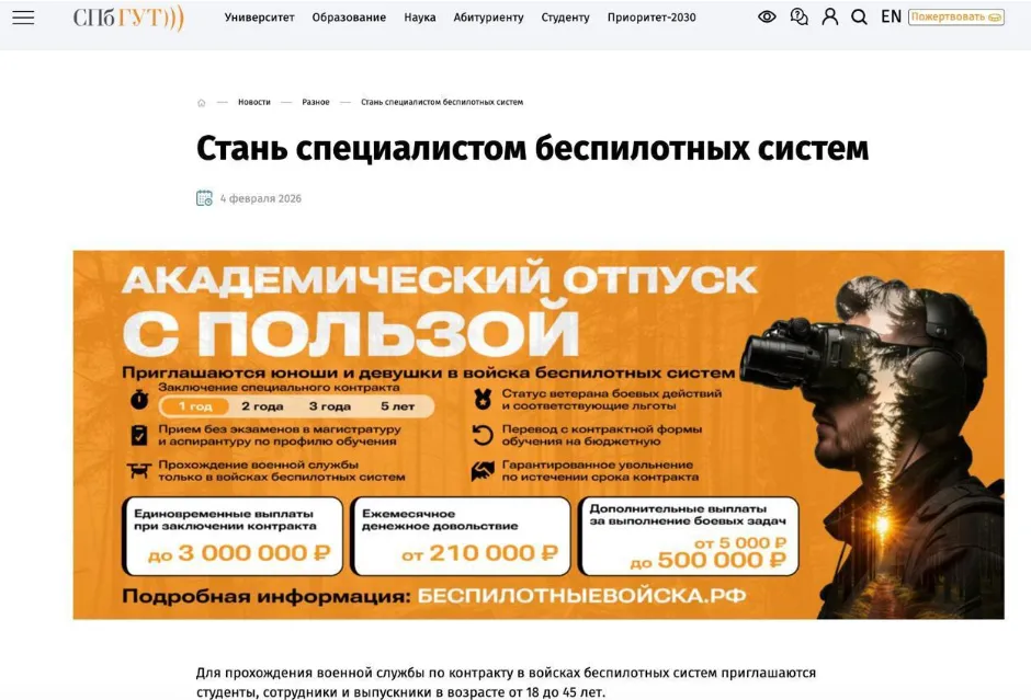 Itt látható egy hirdetés egy orosz egyetemen erről a drónkezelői képzésről: