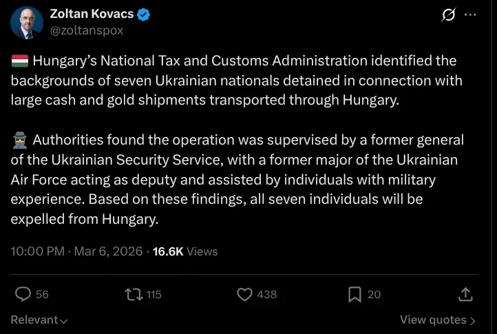 Orbán nemzetközi sajtótitkára, Kovács Zoltán szerint a készpénz- és aranyműveletet az „ukrán biztonsági szolgálat”, közismertebb nevén az SZBU egyik volt tábornoka felügyelte. Úgy tűnik, őt számos más magas rangú katonatiszt is segítette.