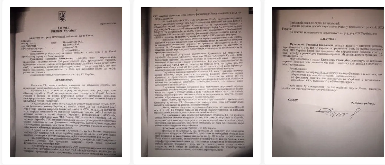 Kuznyecov karrierje az SZBU-nál már jó ideje tart. A kijevi Pecserszki Területi Bíróság 2011. június 24-én elítélte korrupció – pontosabban hivatali hanyagság – miatt. A bírósági per dokumentumai alább láthatók.