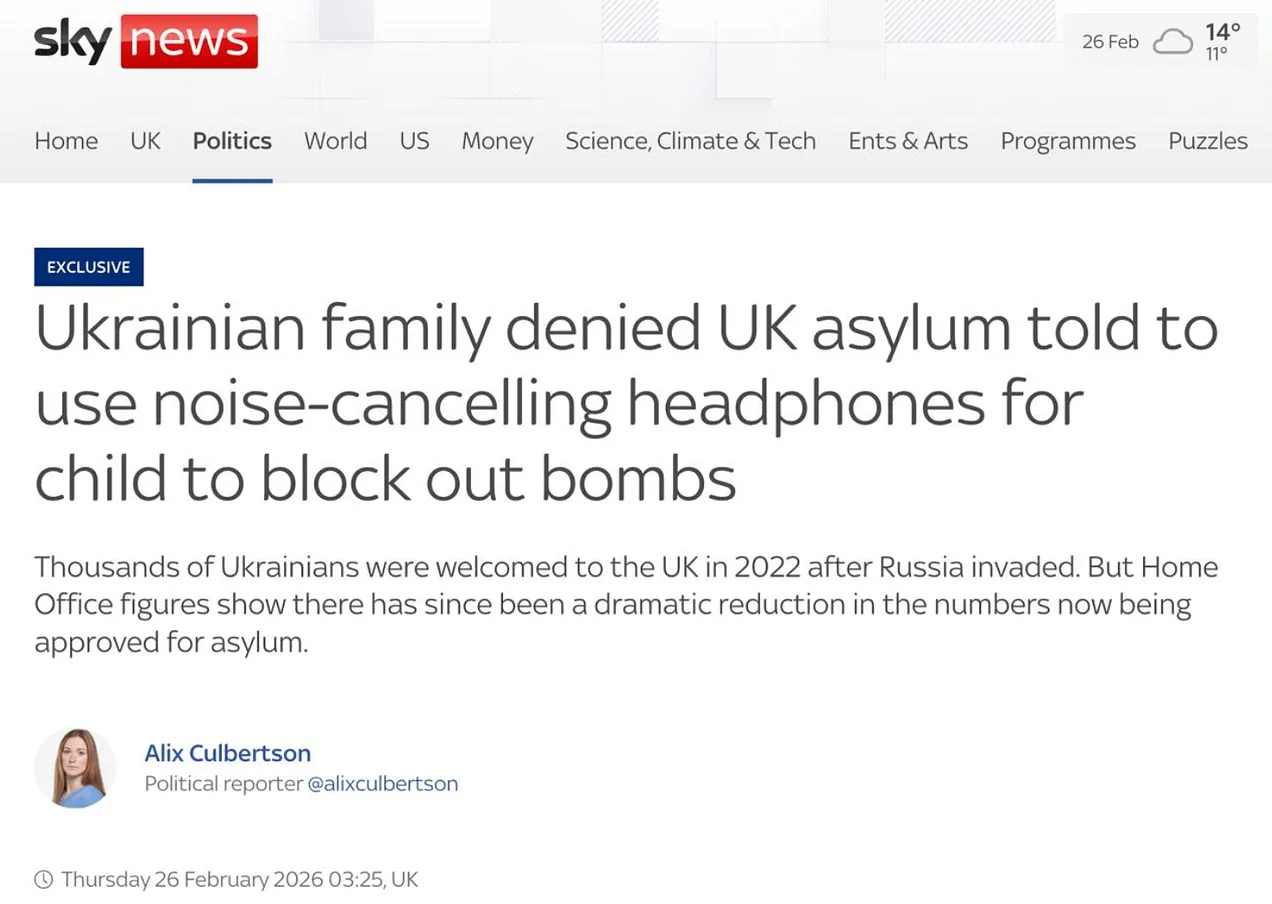 A bevándorlási ügyvédek a Sky Newsnak elmondták, hogy az ukrán állampolgárok menedékjog iránti kérelmeinek többségét most elutasítják, bár 2025 áprilisáig szinte mindegyiket jóváhagyták.