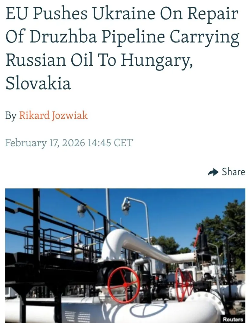 Magyarország és Szlovákia megvétózta az EU 90 milliárd eurós Ukrajna-hitelét. Ennek oka Budapest azon állítása, hogy Ukrajna elzárta az orosz energia áramlását Magyarországra a Druzsba vezetéken keresztül, amely ukrán területen fekszik. Ez Magyarország fő energiaforrása. Ukrajna azt állítja, hogy a vezetéket január végén egy orosz drón rongálta meg, de a magyarok azt válaszolják, hogy Ukrajna helyreállítási erőfeszítései nem voltak túl lelkesek.
